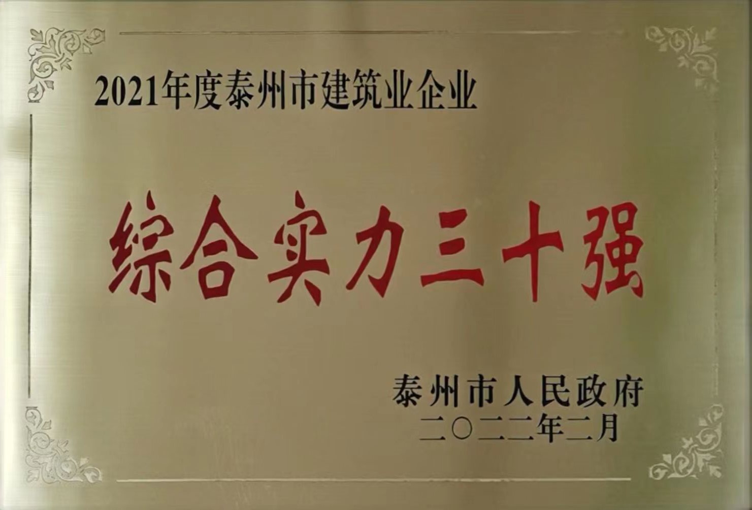 “江蘇省建筑業優秀企業”、“江蘇省建筑業最具成長性百強企業”,2016年被國家工商總局授予“國家級守信用重合同企業”,2015年被全國總工會授予“全國模范職工之家”稱號,2018年被中國建筑企業協會評為“2017年度建筑業AAA級信用企業”